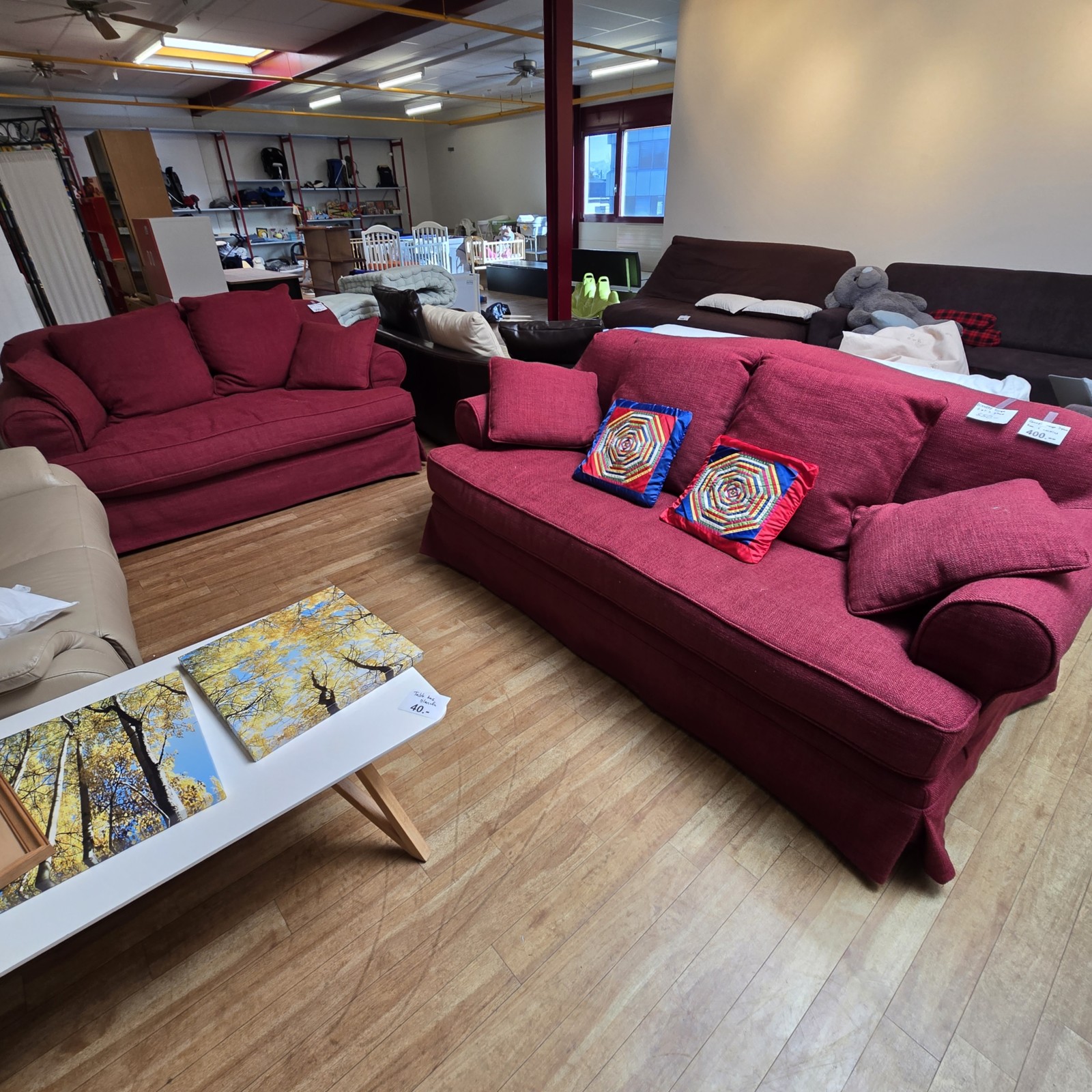 Ensemble canapé 2pl +3pl tissu rouge